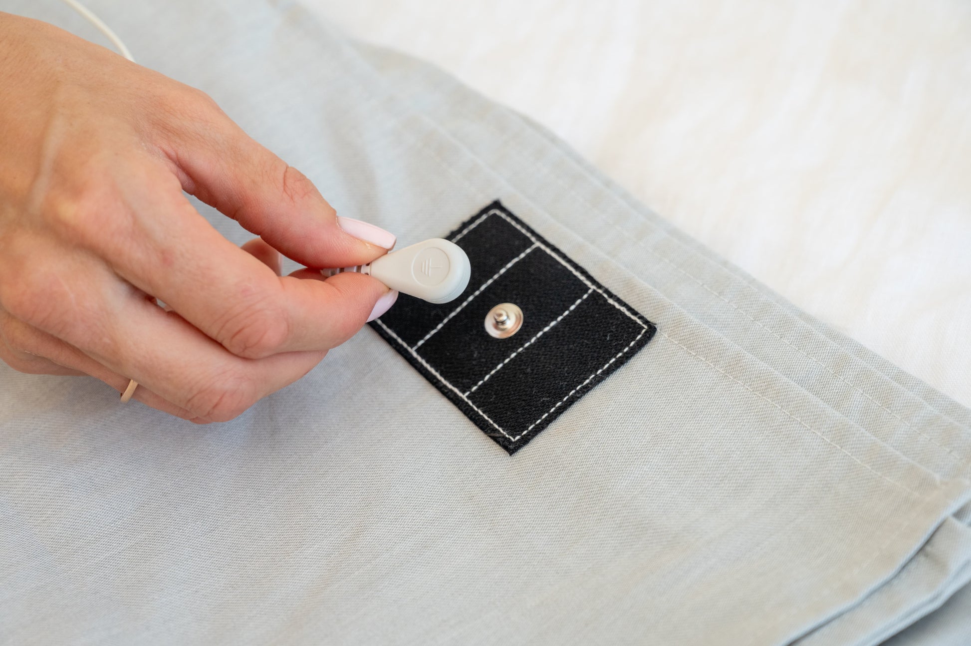 Direct skin contact is strongest, but grounding still works through most natural-fibre bedding like cotton, bamboo or linen. You can place your regular fitted sheet over the grounding sheet as long as it’s breathable.